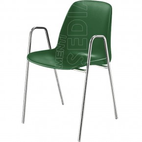 Poltroncina sovrapponibile con braccioli in poliuretano, con telaio interamente metallico in tubo ovale 30x15x1,2 mm. Sedile e spalliera in due elementi separati in plastica polipropilene.