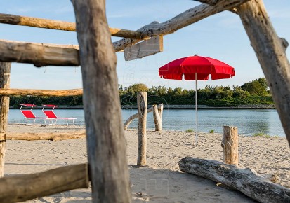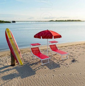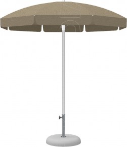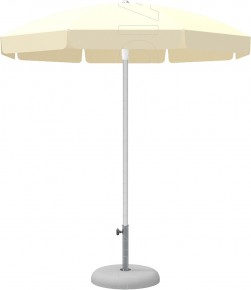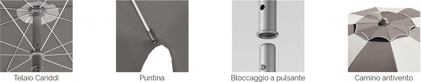 Ombrellone tradizionale da piscina con asta in alluminio anodizzato Ø 35 mm, giunto con bloccaggio a pulsante, componenti in nylon, 8 stecche in acciaio zincate e verniciate bianco, tessuto e bordo in acrilico tinto in massa