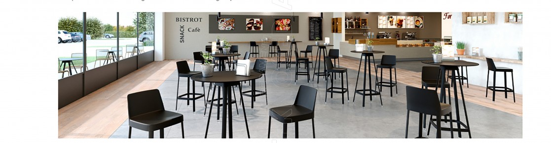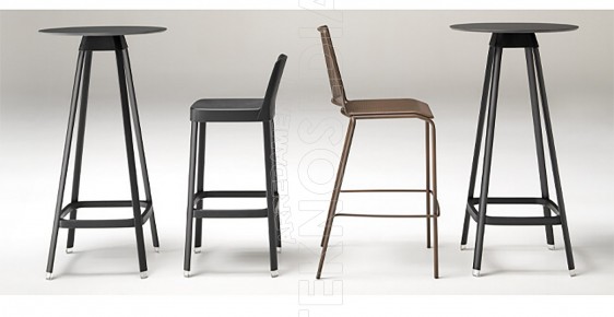 Tavolo con gambe in polipropilene in diverse finiture e piano in HPL con sezione tonda o quadrata. Per ambienti sia interni che esterni.