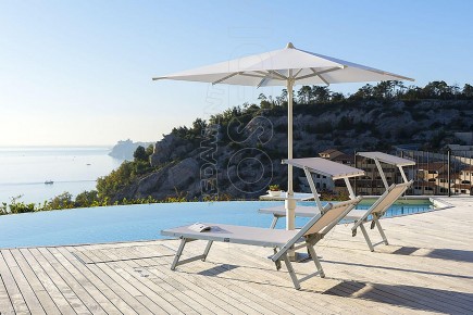 Ombrellone a palo centrale , struttura in alluminio anodizzato, componenti in nylon, 8 stecche in alluminio anodizzato , tessuto e bordo in acrilico tinto in massa