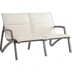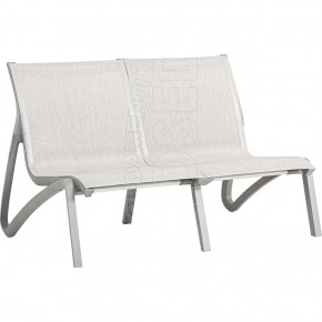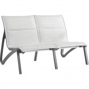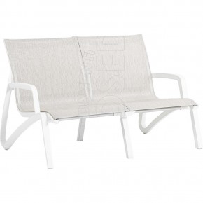 Divanetto relax 2 posti in polipropilene rinforzato con fibra di vetro. Schienale in tela di alta qualità, traspirante, indeformabile, sostituibile facilmente. Resistente ai raggi UV ed alle intemperie. Solida, comfortevole ed ergonomica. Moderna ed elegante, indicata per arredare bar, ristoranti, alberghi, spazi outdoor. Per uso esterno ed interno