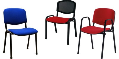 Sedia sovrapponibile con telaio interamente metallico in tubo ovale 30x15x1,5 mm. Sedile e spalliera in due elementi separati imbottiti e rivestiti in tessuto.