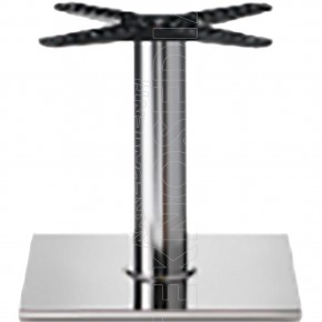 Base quadrata in acciaio inox con colonna tonda e scalino tondo, crociera Star in alluminio. Adatta per essere abbinata a piani di diverse dimensioni e materiali. La base Teodoro è nata per soddisfare le esigenze di ambienti polivalenti come Bar, Ristoranti, Pizzerie, Caffetterie, Enoteche, Taverne, Osterie, Pub.