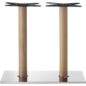 Base rettangolare in acciaio inox a finitura satinata con doppia colonna a sezione rotonda in acciaio o legno , scalino tondo tra la base e la colonna e crociera Star in alluminio. Adatta per essere abbinata a piani di diverse dimensioni e materiali. La base Tina è nata per soddisfare le esigenze di ambienti polivalenti come Bar, Ristoranti, Pizzerie, Caffetterie, Enoteche, Taverne, Osterie, Pub.
