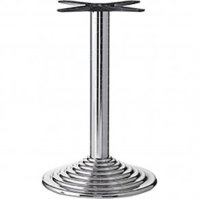 Base tonda a gradini in acciaio inox con colonna in acciaio o legno di faggio a sezione rotonda, crociera Star in alluminio. Adatta per essere abbinata a piani di diverse dimensioni e materiali. La base Narciso è nata per soddisfare le esigenze di ambienti polivalenti come Bar, Ristoranti, Pizzerie, Caffetterie, Enoteche, Taverne, Osterie, Pub.