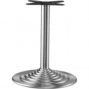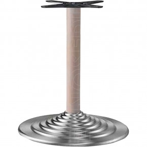 Base tonda a gradini in acciaio inox con colonna in acciaio o legno di faggio a sezione rotonda, crociera Star in alluminio. Adatta per essere abbinata a piani di diverse dimensioni e materiali. La base Narciso è nata per soddisfare le esigenze di ambienti polivalenti come Bar, Ristoranti, Pizzerie, Caffetterie, Enoteche, Taverne, Osterie, Pub.