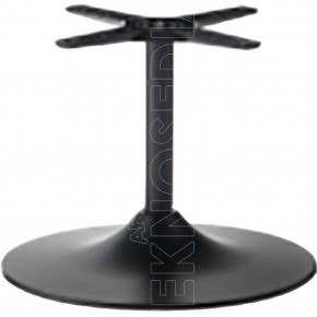 Base tonda realizzata in alluminio verniciata nera e colonna tonda, crociera Star in alluminio. Può essere abbinata a piani di diverse dimensioni e materiali. La base Bugle è nata per soddisfare le esigenze di ambienti polivalenti come Bar, Ristoranti, Pizzerie, Caffetterie. Adatta anche per uso esterno.