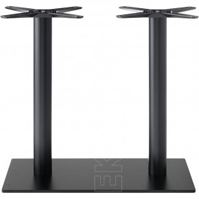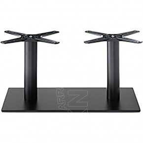 Base in ferro a sezione rettangolare con doppia colonna in ferro a sezione tonda, crociera Star in alluminio. Adatta per essere abbinata a piani di diverse dimensioni e materiali. La base LINDA è nata per soddisfare le esigenze di ambienti polivalenti come Bar, Ristoranti, Pizzerie, Caffetterie, Pub.