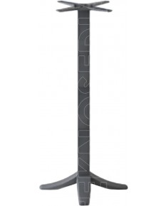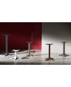 Base in fusione di ghisa a 4 razze con colonna a sezione tonda o quadrata. Può essere abbinata a piani di diverse dimensioni e materiali. Adatta per soddisfare le esigenze di ambienti polivalenti come Bar, Ristoranti, Pizzerie, Caffetterie, Pub.