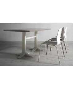 Base doppia in fusione di ghisa con 2 colonne a sezione quadrata. Studiata per essere abbinata a piani di grandi dimensioni e materiali. Adatta per soddisfare le esigenze di ambienti polivalenti come Bar, Ristoranti, Pizzerie, Caffetterie, Pub.