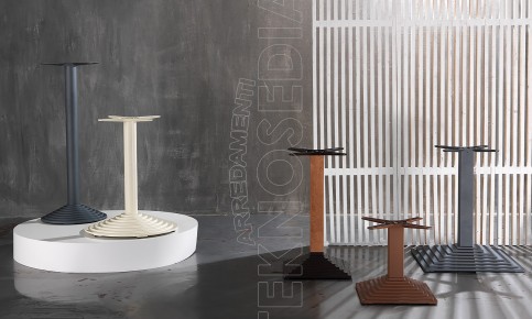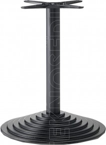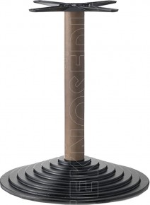 Base in ghisa tonda a gradoni con colonna in acciaio o legno di faggio a sezione tonda, crociera Star in alluminio. Adatta per essere abbinata a piani di diverse dimensioni e materiali. La base OLGA è nata per soddisfare le esigenze di ambienti polivalenti come Bar, Ristoranti, Pizzerie, Caffetterie, Pub.