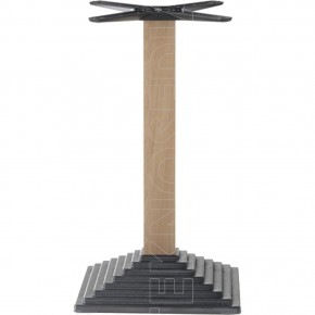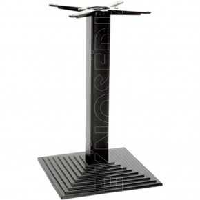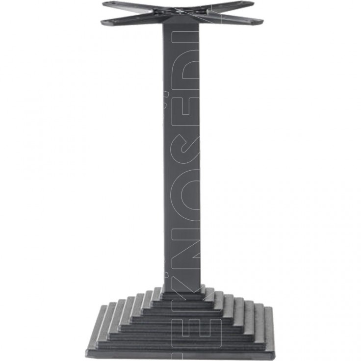 Base in ghisa quadrata a gradoni con colonna in acciaio o legno di faggio a sezione quadrata, crociera Star in alluminio. Adatta per essere abbinata a piani di diverse dimensioni e materiali. La base MAYA è nata per soddisfare le esigenze di ambienti polivalenti come Bar, Ristoranti, Pizzerie, Caffetterie, Pub.