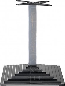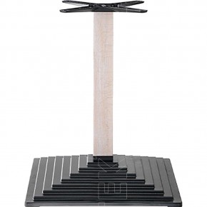 Base in ghisa quadrata a gradoni con colonna in acciaio o legno di faggio a sezione quadrata, crociera Star in alluminio. Adatta per essere abbinata a piani di diverse dimensioni e materiali. La base MAYA è nata per soddisfare le esigenze di ambienti polivalenti come Bar, Ristoranti, Pizzerie, Caffetterie, Pub.