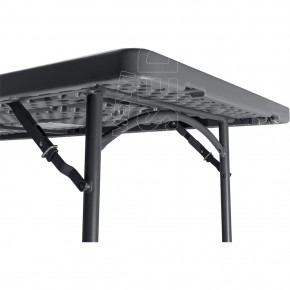 Tavolo pieghevole con struttura interamente metallica, saldature digitali lineari, precise e indistruttibili. Piano in polietilene puro, non mescolato. Materia prima di qualità e con protezione UV. Flessibile in caso di urto. Resistente ai carichi pesanti