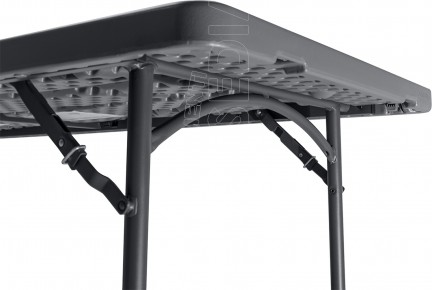 Tavolo pieghevole con struttura interamente metallica, saldature digitali lineari, precise e indistruttibili. Piano in polietilene puro, non mescolato. Materia prima di qualità e con protezione UV. Flessibile in caso di urto. Resistente ai carichi pesanti
