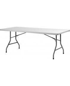 Tavolo pieghevole con struttura interamente metallica, saldature digitali lineari, precise e indistruttibili. Piano in polietilene puro, non mescolato. Materia prima di qualità e con protezione UV. Flessibile in caso di urto. Resistente ai carichi pesanti