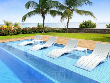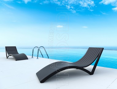 Lettino in polipropilene rinforzato in fibra di vetro, impilabile, totalmente sanificabile e resistente agli agenti atmosferici. Linea dalla forma particolare ad onda , leggero e facilmente trasportabile grazie alle ruote si adatta alla perfezione per arredare giardini e bordi piscine