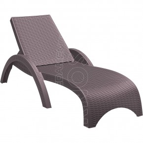 Lettino prendisole impilabile, dotato di schienale in cinque posizioni, ruote nascoste e gommini antiscivolo. È realizzato in resistente resina resistente agli agenti atmosferici, con stampa Finto Rattan. Il telaio non metallico non si sfalda, non arrugginisce o non si deteriora. È protetto dai raggi UV che assicura che i colori non sbiadiscano. Per uso esterno.