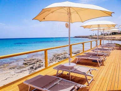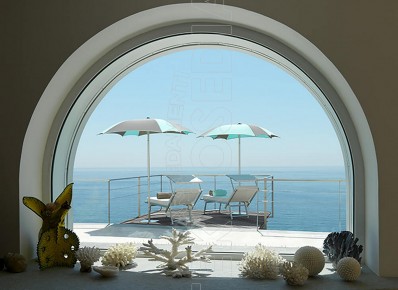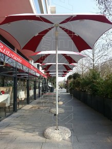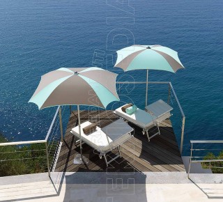 - Tessuto e bordo in acrilico tinto in massa trattato con idro olio repellente