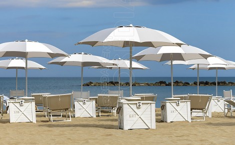 - Tessuto e bordo in acrilico tinto in massa trattato con idro olio repellente
