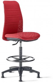 Sgabello operativo girevole con schienale e sedile imbottiti. Versione basic con elevazione a gas o special con meccanismo Mini-Syncro autoregolante. Struttura in tubo tondo d’acciaio, Ø 20 mm sp. 2, finitura verniciata a polveri in tela portante rivestiva in tessuto accoppiato. Supporto lombare regolabile integrato (6 cm).