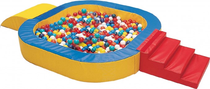 Struttura,Telo di copertura,Telo di fondo,900 Palline Diam.7. Imbottita in poliuretano espanso densità kG.30 al mc. Rivestimento in ecotessuto GREEN COVER, elastico, morbido al tatto, antiscivolo, impermeabile, antiabrasivo, resistente alle lacerazioni, lavabile, privo di ftalati ed ignifugo in classe"1"IM.