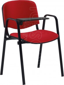 Poltroncina sovrapponibile con telaio interamente metallico in tubo ovale 30x15x1,2 mm. Sedile e spalliera in due elementi separati imbottiti e rivestiti in tessuto. Dotata di tavoletta scrittoio girevole in polipropilene