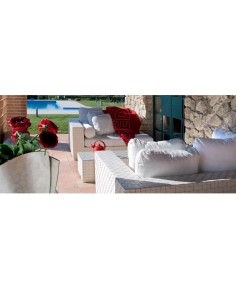 Salotto componibile con struttura in alluminio e ricoperta da fibra in pvc stampato rattan -Altamente indicato per arredare con eleganza e gusto i dehors o spazi all'aperto di Bar, Ristoranti, Alberghi, Stabilimenti balneari. Per uso interno ed esterno.