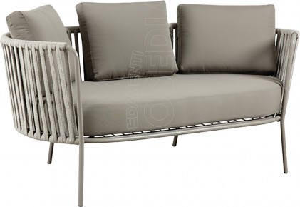 Divano con struttura interamente in Metallo, sedile e spagliera Imbottiti e rivestito in Corda.