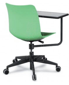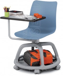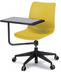 Sedia Girevole con base in Nylon a 4 razze e Scocca in un unico pezzo in polipropilene. Tavoletta Scrittoio in Polipropilene girevole a 360° e cestello Portaoggeti/Portazaino