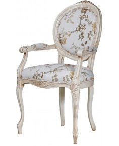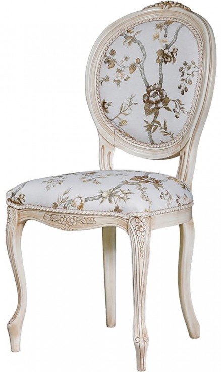Sedia in legno di faggio con schienale e sedile imbottiti in tessuto. La sua linea regale ma confortevole la rende adatta ad arredare ambienti che ne ricercano quel determinato stile e che ne vogliono ricreare l'atmosfera - ristoranti, alberghi, sale polivalenti.