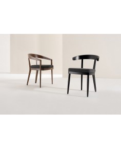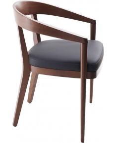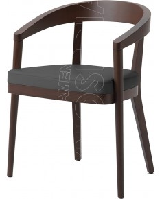 Poltroncina in legno di Faggio con schienale in legno e sedile imbottito e rivestito in tessuto, sky o pelle.
