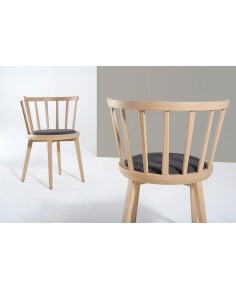 Sedia con struttura in legno di faggio massiccio, rivisitata in chiave moderna con particolarità della forma e della lavorazione del sedile rivestito , Monoblocco - Ideata per rendere accogliente e confortevole qualsiasi ambiente domestico che di lavoro come ristoranti, pub, pizzerie, taverne, osterie, bistrot, alberghi.