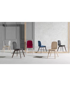 Sedia con telaio in legno di faggio, scocca in tecnopolimero rivestita in tessuti di differenti composizioni e colorazioni , Smontabile - Sedia versatile per rendere accogliente e confortevole qualsiasi ambiente domestico che di lavoro come ristoranti, bistrot, sale di attesa, uffici, alberghi.
