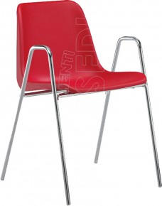 Poltroncina sovrapponibile con telaio interamente metallico in tubo tondo Diam. 18mm. Scocca in un unico pezzo in plastica polipropilene.