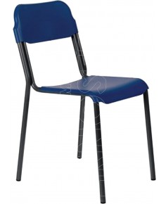 Sedia sovrapponibile con telaio interamente metallico in tubo tondo Diam. 22 , con doppio tubo di rinforzo sullo schienale. Sedile e spalliera in due elementi separati in plastica polipropilene.