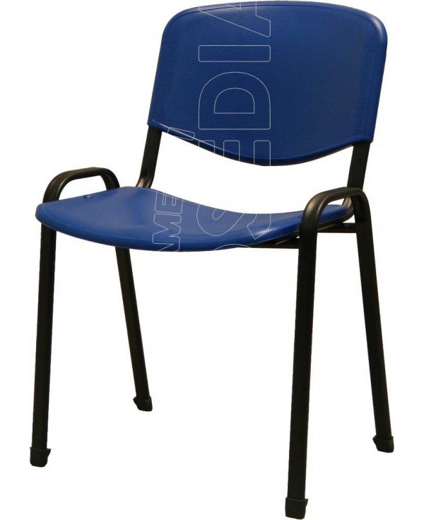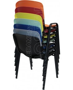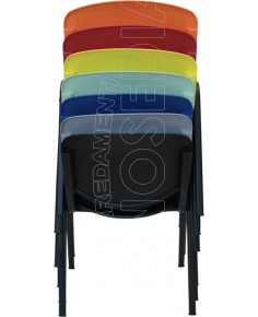 Sedia sovrapponibile con telaio interamente metallico in tubo ovale 30x15x1,5 mm. Sedile e spalliera in due elementi separati in plastica polipropilene.
