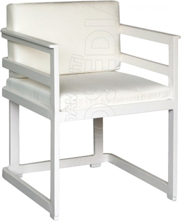 Poltrona in alluminio verniciato. Altamente indicata per arredare gli spazi all'aperto di Bar, Ristoranti, Locali. Per uso esterno.