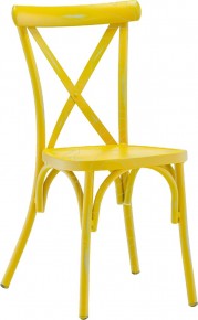 Sedia impilabile in alluminio verniciato con effetto vintage. Altamente indicata per arredare con ricercatezza gli spazi all'aperto di Bar, Ristoranti, Agriturismi, Alberghi, Locali. Per uso esterno ed interno