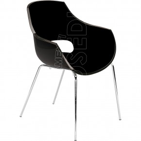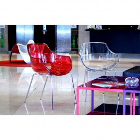 Poltrona impilabile con scocca in policarbonato nei colori trasparenti o lucidi. Seduta dalla linea avvolgente, contemporanea e di design. Adatta per arredare caffè, ristoranti, hotels, uffici. Per uso interno