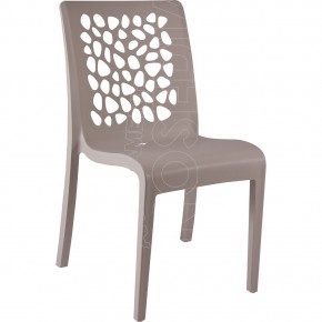 Sedia impilabile in polipropilene. Resistente ai raggi UV ed alle intemperie. Leggera, Elegante, Comfortevole ed Ergonomica. Dalla linea moderna e contemporanea con un design di ispirazione naturale. Indicata per arredare bar, ristoranti, alberghi, agriturismi, spazi di pubblico utilizzo. Per uso esterno ed interno