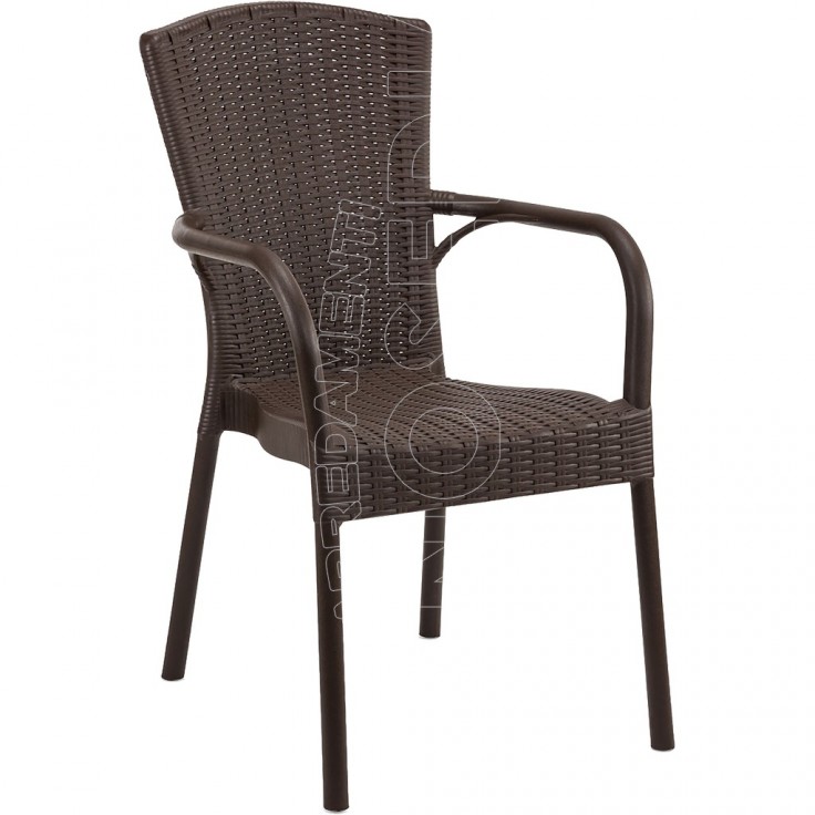 Poltrona impilabile in polipropilene rinforzato con fibra di vetro. Seduta stampata con effetto Rattan. Per uso interno ed esterno