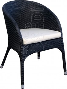 Poltroncina con struttura in alluminio rivestita in fibra sintetica inalterabile agli agenti atmosferici.