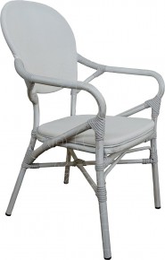 Poltrona impilabile in alluminio e ricoperta da fibra textilene, altamente indicato per arredare gli spazi all'aperto di Bar, Ristoranti, Pizzerie, Caffetterie, Alberghi, Locali. Per uso interno ed esterno.