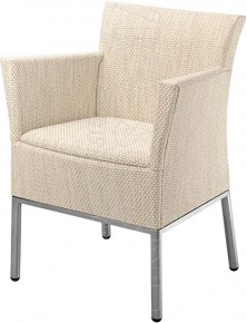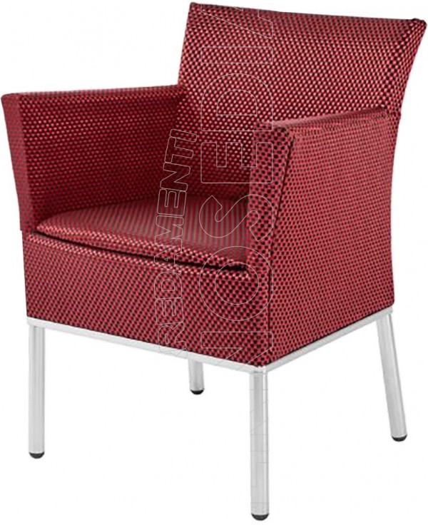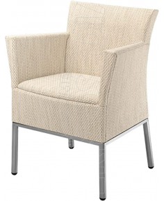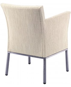 Poltrona con base in acciaio Inox 316 resistente agli agenti atmosferici e alla salinità dell'acqua di mare. Rivestita in Tessil è super resistente a strappi e mantiene inalterato il colore nel tempo. Design elegante e raffinato grazie al sedile imbottito per esterno.