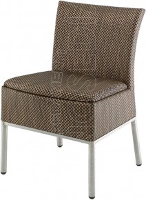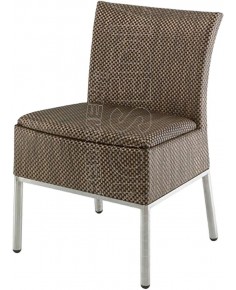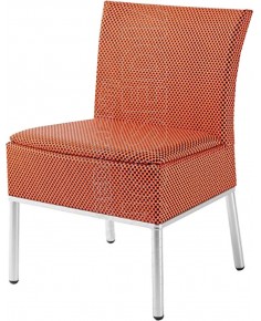 Poltrona con base in acciaio Inox 316 resistente agli agenti atmosferici e alla salinità dell'acqua di mare. Rivestita in Tessil è super resistente a strappi e mantiene inalterato il colore nel tempo. Design elegante e raffinato grazie al sedile imbottito per esterno.