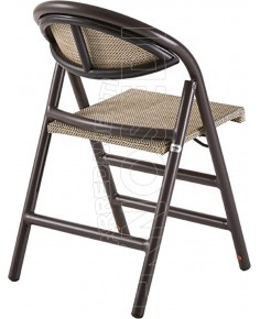 Sedia pieghevole con telaio in Alluminio verniciato rivestito in Tessil resistente agli agenti atmosferici. Munita di schienale e sedile ricambiabili nel tempo.