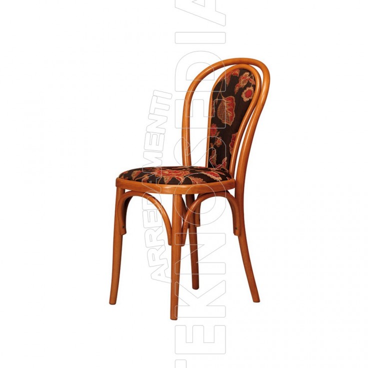 Sedia in legno con sedile e schienale in tessuto imbottito, Impilabile, Monoblocco - Ideata per rendere accogliente e confortevole qualsiasi ambiente domestico che di lavoro come bar, caffetterie, pizzerie, alberghi e sale polivalenti.