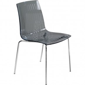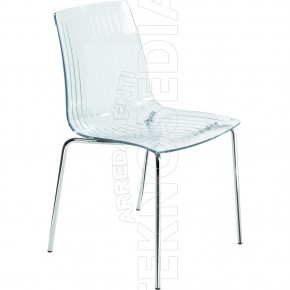 Sedia impilabile con scocca in policarbonato trasparente o lucida e struttura in tubo di acciaio. Seduta dalla linea elegante e contemporanea. Adatta per arredare caffè, bar, ristoranti, hotels, locali, uffici. Per uso interno ed esterno