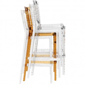 Sgabello in Policarbonato trasparente o lucido, Impilabile - Pratico e totalmente Sanificabile - Viene definito lo sgabello da matrimonio per allestire la sala Banqueting ma è Altamente indicato anche per arredare altri tipi di locali ed eventi. Comodo e Leggero - resistente ai graffi e raggi UV. Adatto per uso interno ed esterno